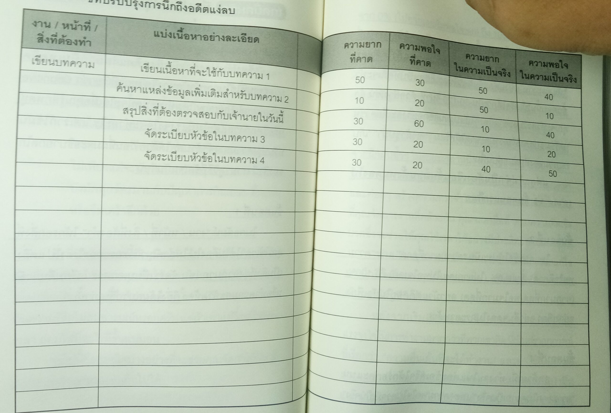 คนมองโลกในแง่ลบ นึกถึงอดีตเชิงลบและจำผิด คนประเภทนี้ไม่เพียงจะขาดความมั่นใจในการทำงานให้เสร็จแล้ว ยังมีปัญหาในการประเมินเวลาอีกด้วย มาเริ่มด้วยการทำชีทปรับปรุงการนึกถึงอดีตแง่ลบ