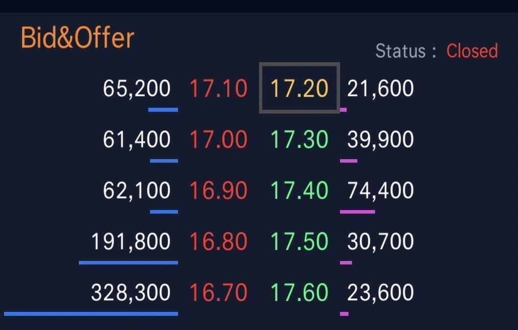 1. Offer มากกว่า Bid อย่างเห็นได้ชัด