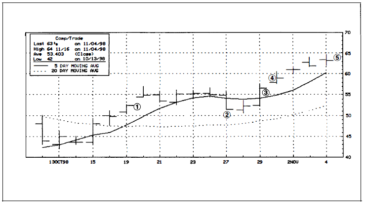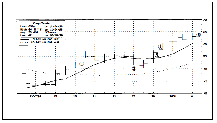 - ราคาหุ้น Merrill Lynch เทรดเหนือระดับเส้นค่าเฉลี่ย 5 วัน และเส้นค่าเฉลี่ย 20 วัน