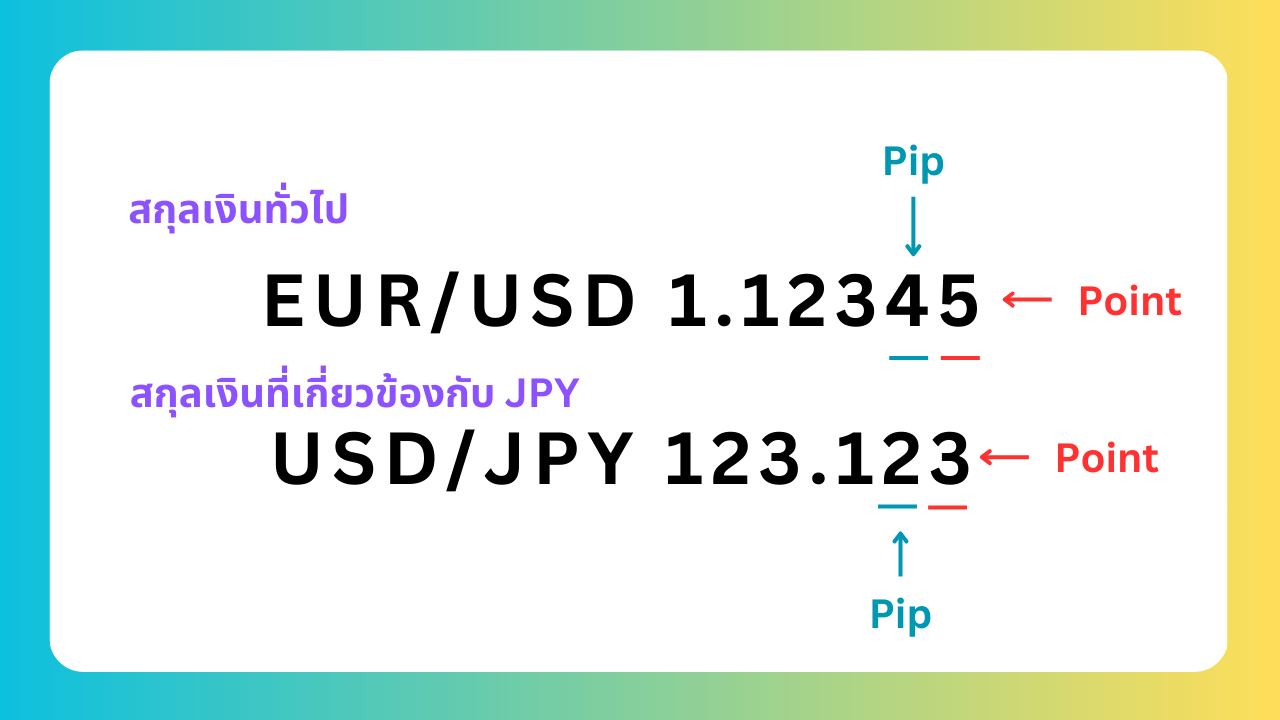 Point (หรือ Pipette) เป็นหน่วยที่เล็กกว่า Pip และใช้ในกรณีที่โบรกเกอร์เพิ่มทศนิยมอีก 1 ตำแหน่ง