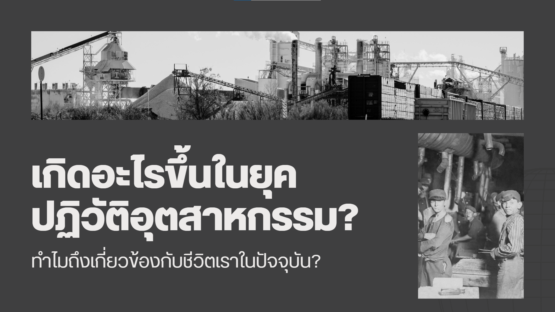 การปฏิวัติอุตสาหกรรมเป็นช่วงเวลาสำคัญในประวัติศาสตร์โลกที่เปลี่ยนสังคมเกษตรกรรมและหัตถกรรมให้กลายเป็นสังคมอุตสาหกรรมและเมือง เริ่มต้นในประเทศอังกฤษช่วงศตวรรษที่ 18 และได้แพร่กระจายไปทั่วยุโรปและอเมริกา แม้ว่านักประวัติศาสตร์ชาวฝรั่งเศสจะเคยใช้คำนี้มาก่อน แต่ Arnold Toynbee นักประวัติศาสตร์เศรษฐกิจชาวอังกฤษเป็นผู้ทำให้คำว่า “การปฏิวัติอุตสาหกรรม” เป็นที่รู้จักแพร่หลาย โดยใช้อธิบายการพัฒนาทางเศรษฐกิจของอังกฤษระหว่างปี 1760 ถึง 1840