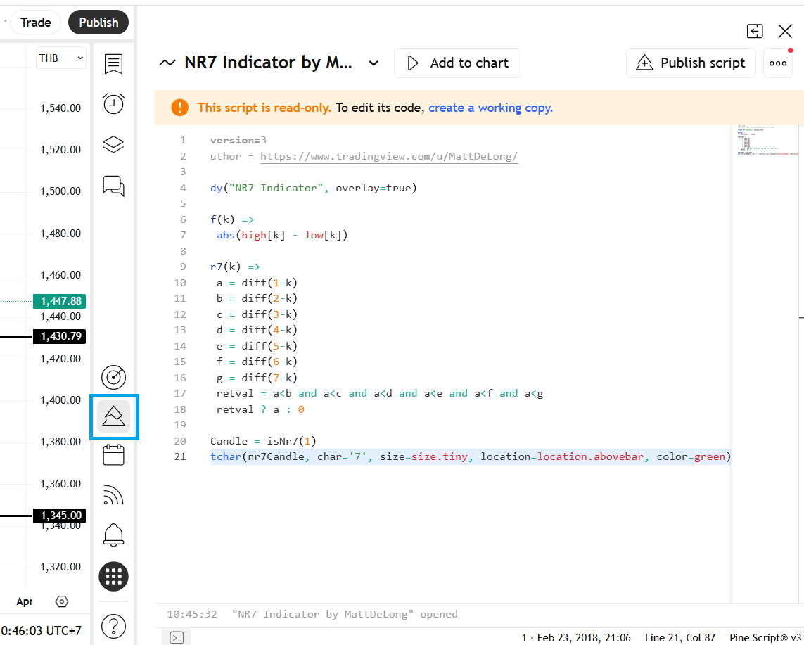 ตัวโปรแกรม Tradingview จะมี Indicators ให้เราเรียกใช้งานได้เลยจำนวน 100 กว่าตัว ทั้งนี้ใครที่มีไอเดียจะสร้าง Indicator ขึ้นมาเอง ก็ทำสามารถทำได้เช่นเดียวกัน (กดตรง Pine Editor ในส่วนของด้านล่างกราฟ) โดยผ่านการเขียน Script หรือสามารถโหลด Script ของ Indicators ต่างๆ จากคนอื่นที่ใจดีเขียนไว้ให้แล้วก็ได้เช่นเดียวกัน และสามารถทำการ Backtest ได้ด้วยเช่นเดียวกัน